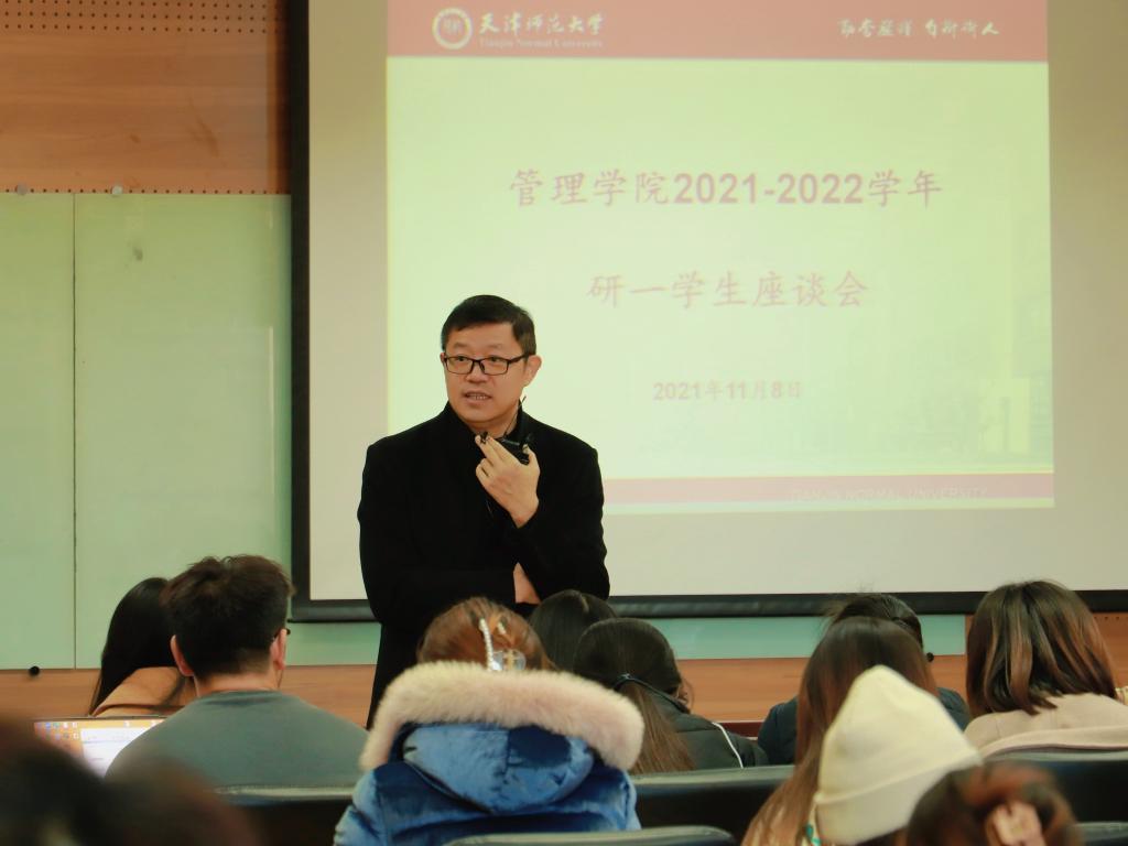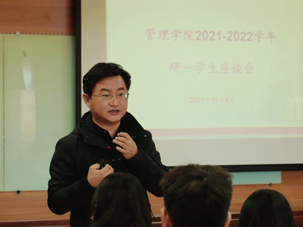 副院长王晔首先代表全院师生对2021级研究生新生表示热烈的欢迎和祝贺。他指出提前了解研究生培养方案的重要性,鼓励同学们尽早明确学分构成和论文答辩程序,提前做好学业准备和规划。另外,王晔就导师和学生的双向选择,针对图书情报专业硕士学生人数多、导师分配困难的问题,做出了解答和反馈。同时,同学们也结合开学以来面临的实际问题,畅所欲言,与王晔展开了深入交流和探讨。