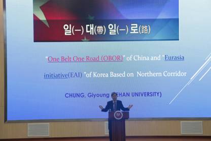 韩方教授丁起荣先生以《“一带一路”背景下欧亚运输走廊的研究》为题进行了报告,在中国“一带一路”计划的背景下,结合韩国的“2015创新计划”分析了欧亚经济带中铁路运输物流系统的结构和新规划,研究了金融支撑、路径规划、集装箱的标准化等问题,提出了相关国家国际合作的必要性等关键问题,使校友们获益颇丰。