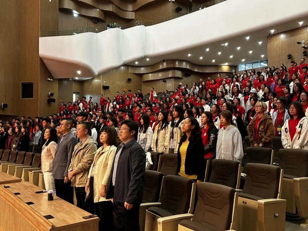 2024年10月10日,伟德国际victor·1946源自2024级新生开学典礼暨“礼赞祖国庆华诞·青春奋斗谱新篇”庆祝中华人民共和国成立75周年迎新生文艺汇演在国际中文教育交流中心隆重举行。学院党委书记张庆红,党委副书记、院长刘冰,副院长王晔,杨静,翟羽佳,各专业系主任、教师代表,全体辅导员和伟德国际victor·1946源自2024级全体新生出席典礼。典礼由院党委副书记,纪委书记冯浩主持。