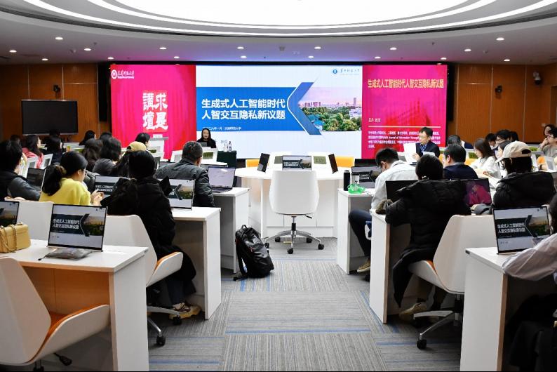 在做客我校“求是讲坛”时,吴丹以“生成式人工智能时代人智交互隐私新议题”为题作报告。她聚焦人智交互的时代转向,深入分析了从人机交互到人智交互的缘起、特征及影响。结合团队相关研究成果,指出生成式人工智能特征引发的隐私挑战与风险,并从理论和实践层面阐释可解释GenAI的紧迫性和必要性,及其在隐私维度的新使命。详细介绍了研究团队围绕用户与GenAI交互中的隐私披露问题、面向用户与GenAI交互中的可信度评估问题、多元应用场景中的人智隐私协同实践的相关研究成果。提出从算法、管理、用户维度构建面向未来的人智共生生态,绘就人智共生时代的隐私治理新图景。